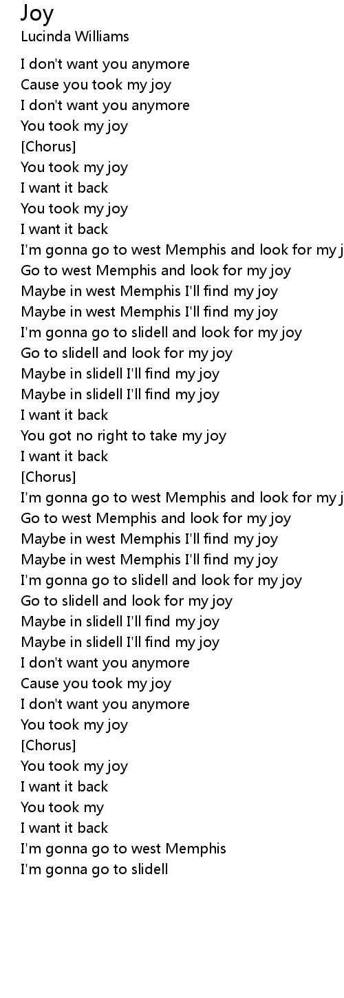 I'm gonna go to west Memphis and look for my joy