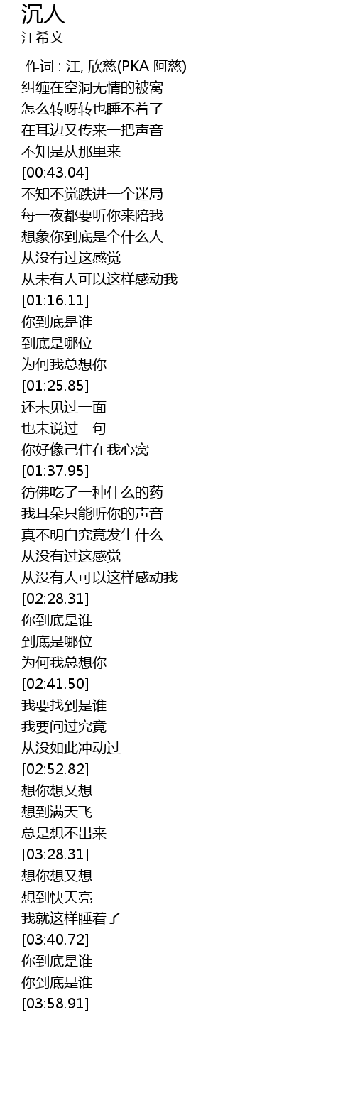 | [03:42.13] | 你到底是谁 |