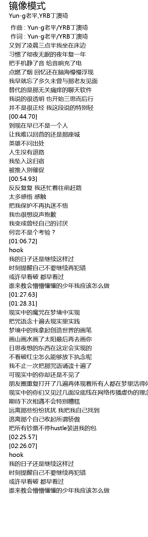 | [00:01.000] | 作词 : Yun-g老平/YRB丁澳琦 |