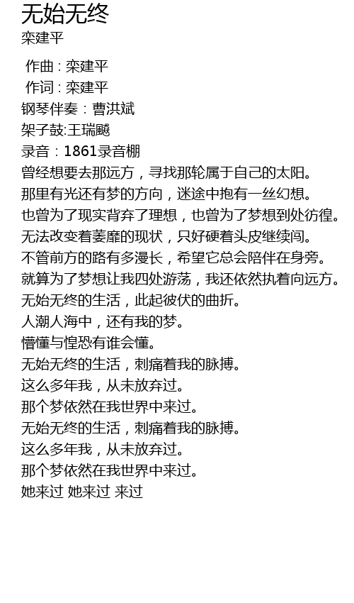 | [00:01.000] | 作词 : 栾建平 |