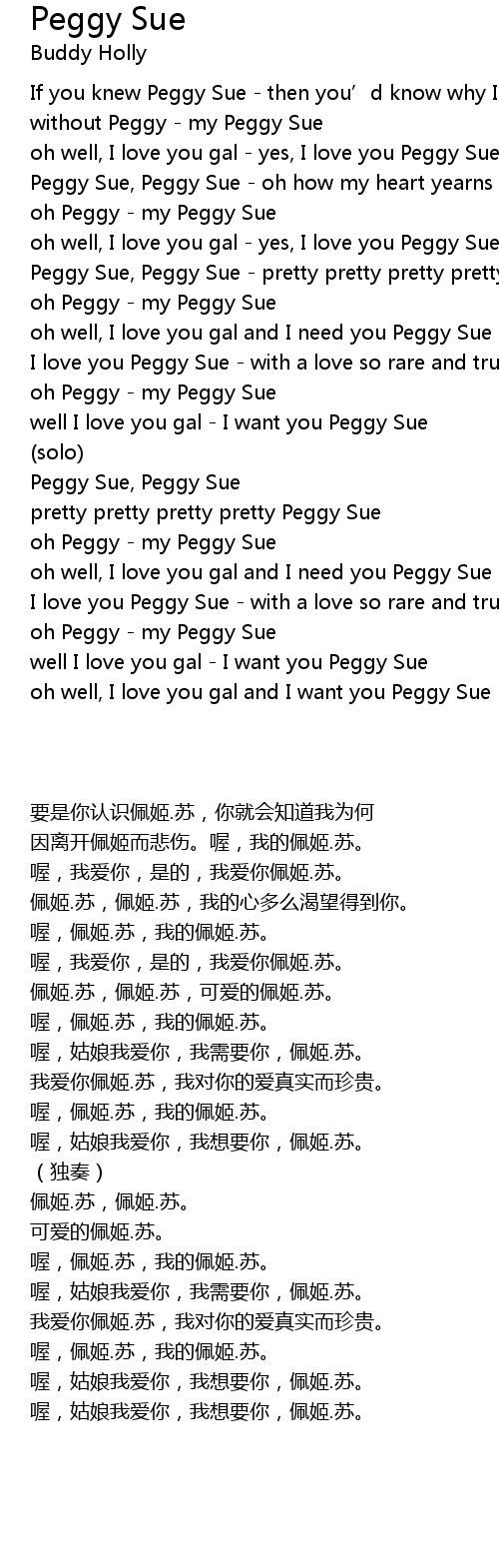 | [01:42.86] | Peggy Sue, Peggy Sue |