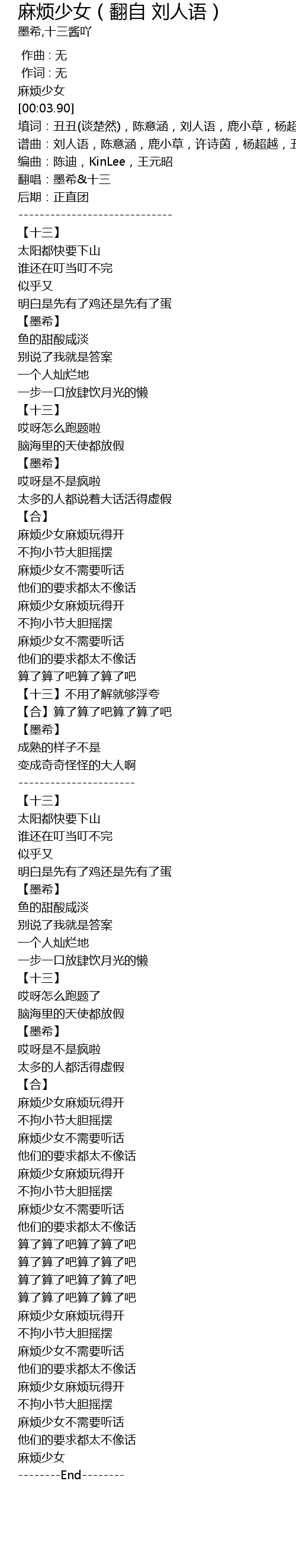| [03:00.92] | 麻烦少女麻烦玩得开 |