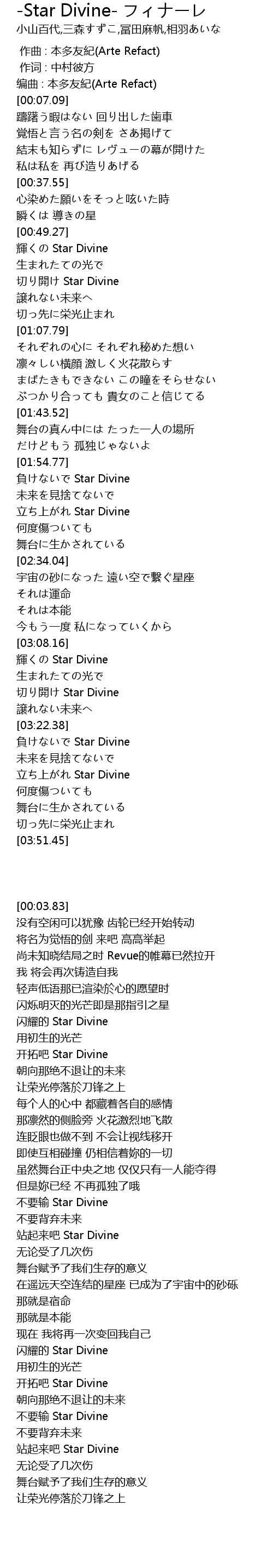 | [03:22.70] | 負けないで Star Divine |