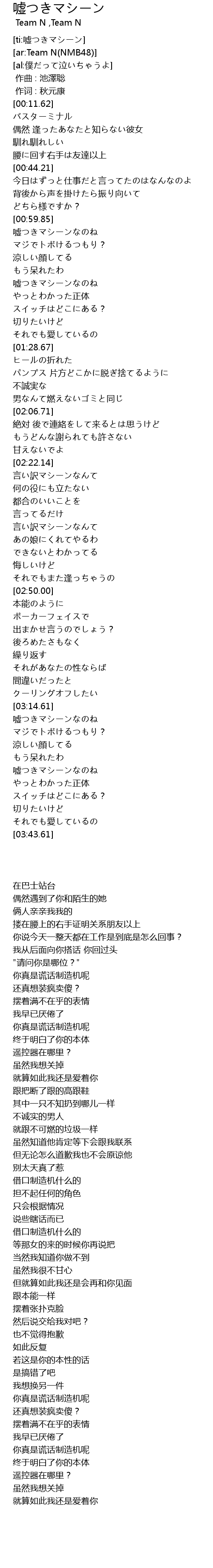 | [00:44.97] | 今日はずっと仕事だと言ってたのはなんなのよ |