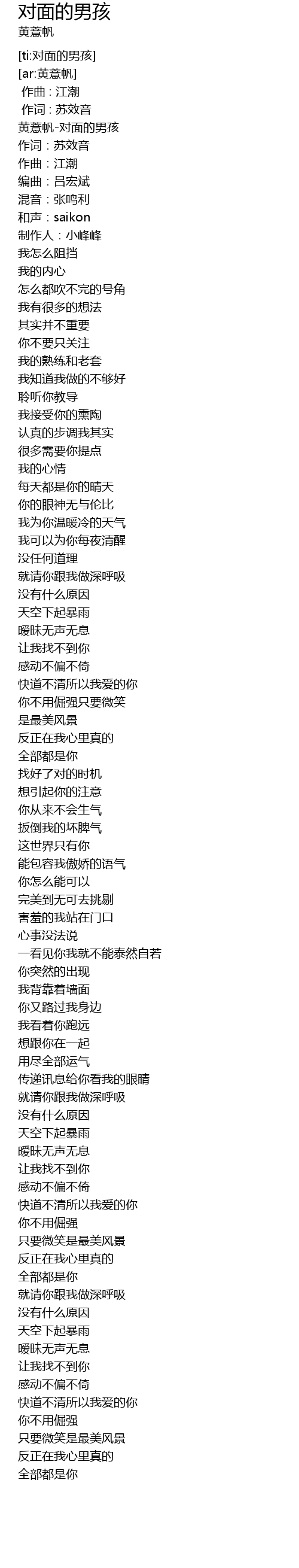 | [00:00.202] | 黄薏帆-对面的男孩 |