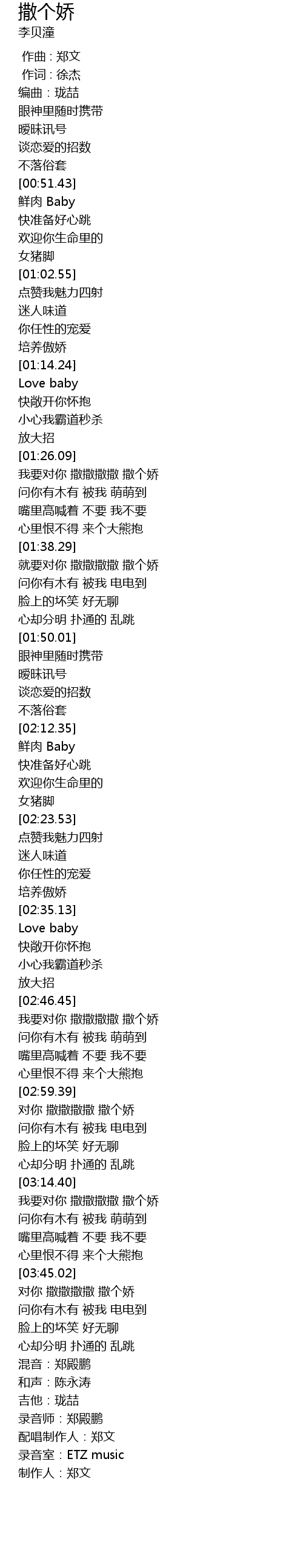 | [03:45.47] | 对你 撒撒撒撒 撒个娇 |