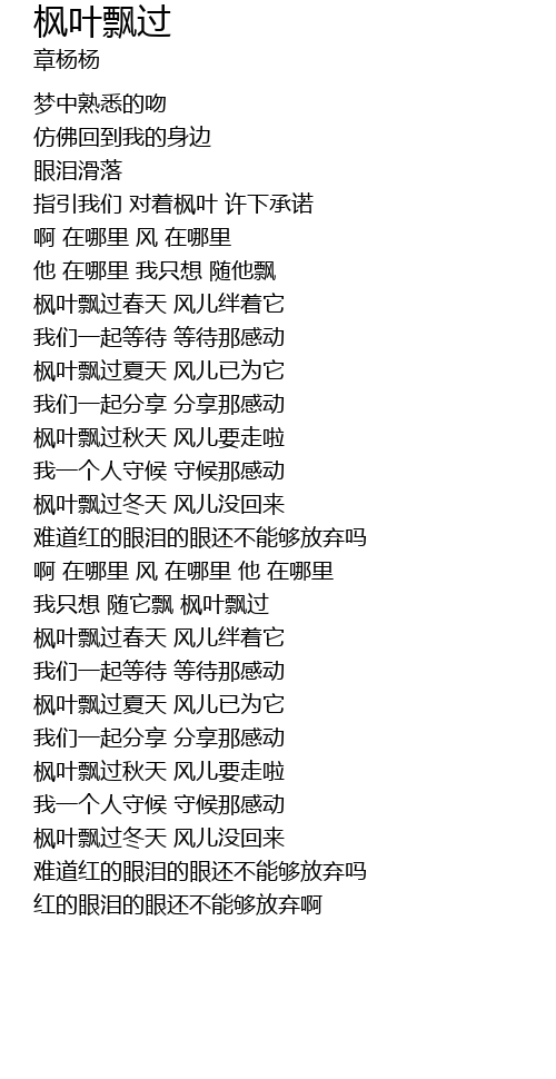 | fēng yè piāo guò chūn tiān fēng ér bàn zhe tā | |