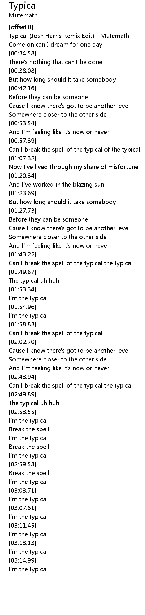[00:00.93] Typical (Josh Harris Remix Edit) - Mutemath