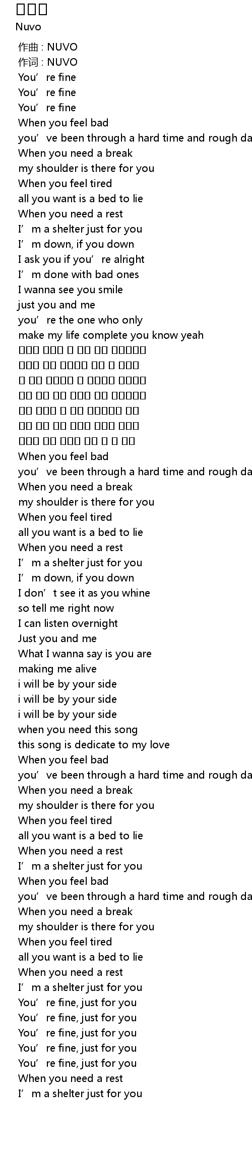 | [00:00.220] | 作词 : NUVO |