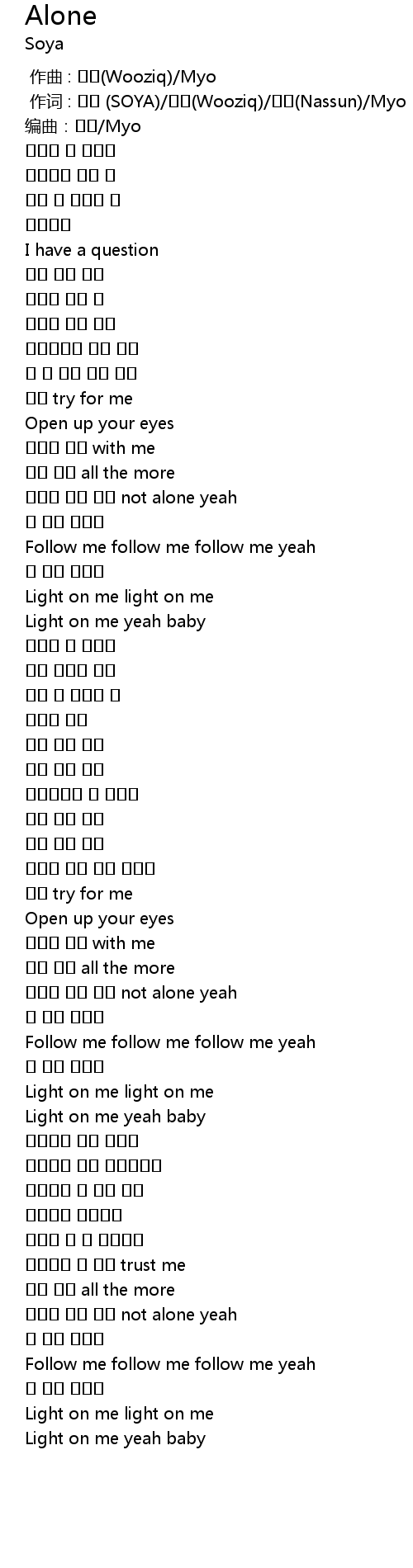 | [00:01.000] | 作词 : 소야 (SOYA)/우직(Wooziq)/낯선(Nassun)/Myo |