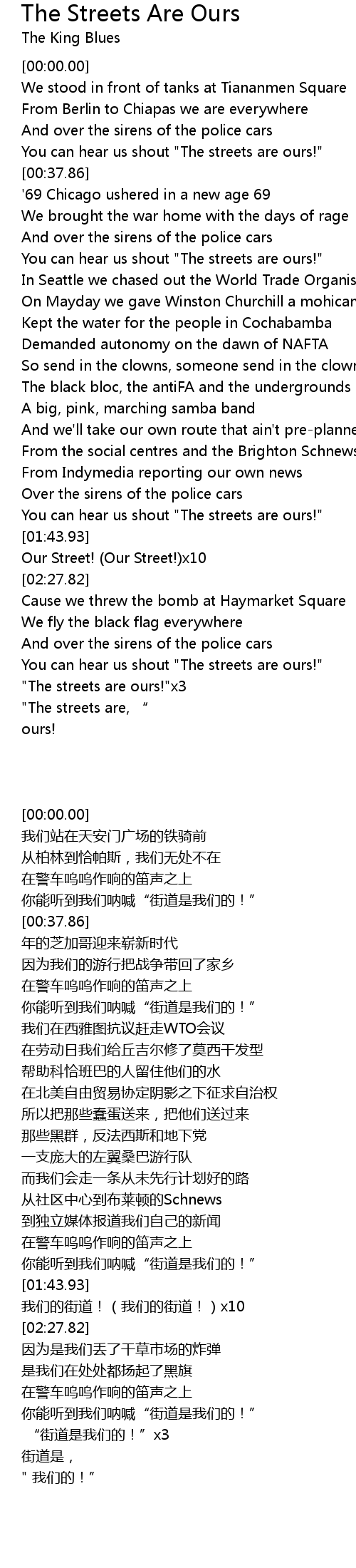 | [00:33.41] | You can hear us shout "The streets are ours!" |