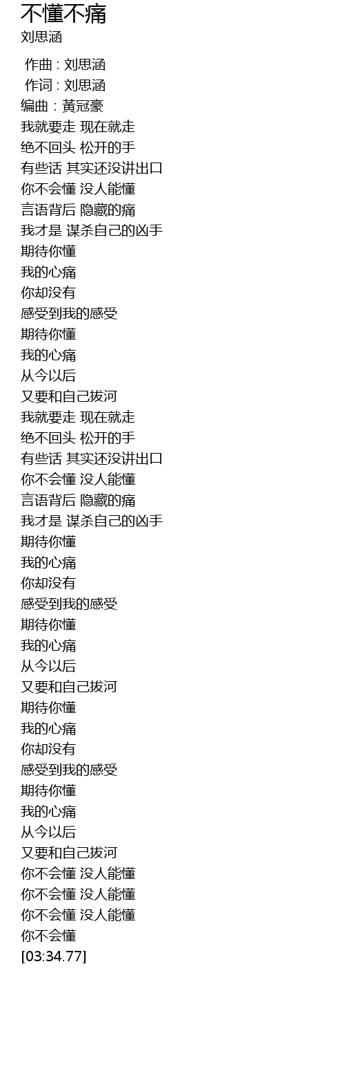 | [03:32.47] | 你不会懂 |