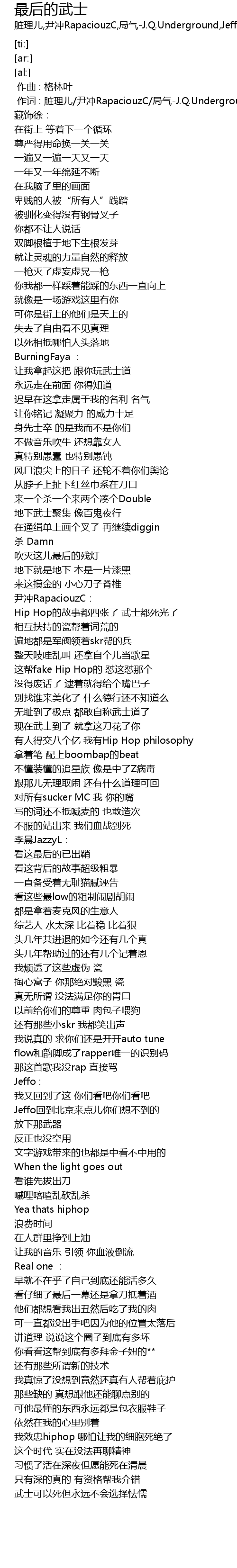 | [01:37.39] | Hip Hop的故事都四张了 武士都死光了 |