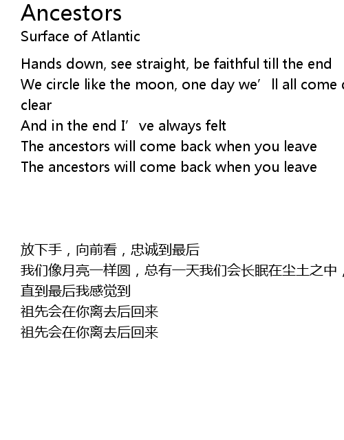 | [00:39.03] | The ancestors will come back when you leave |