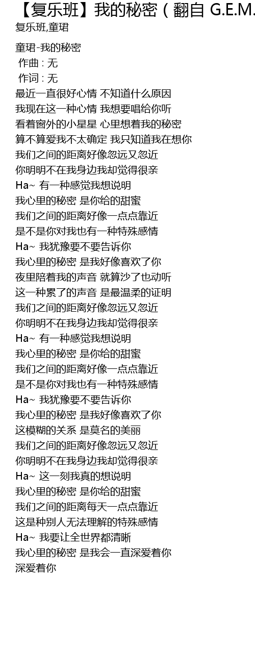 | [00:37.94] | 看着窗外的小星星 心里想着我的秘密 |