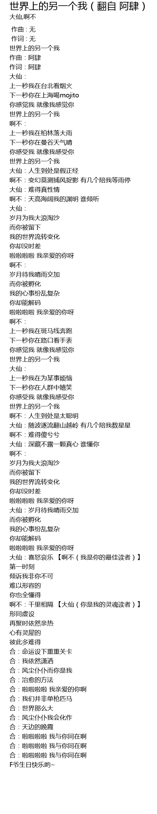 | [03:03.82] | 啊不:千里相隔 【大仙(你是我的灵魂读者)】 |