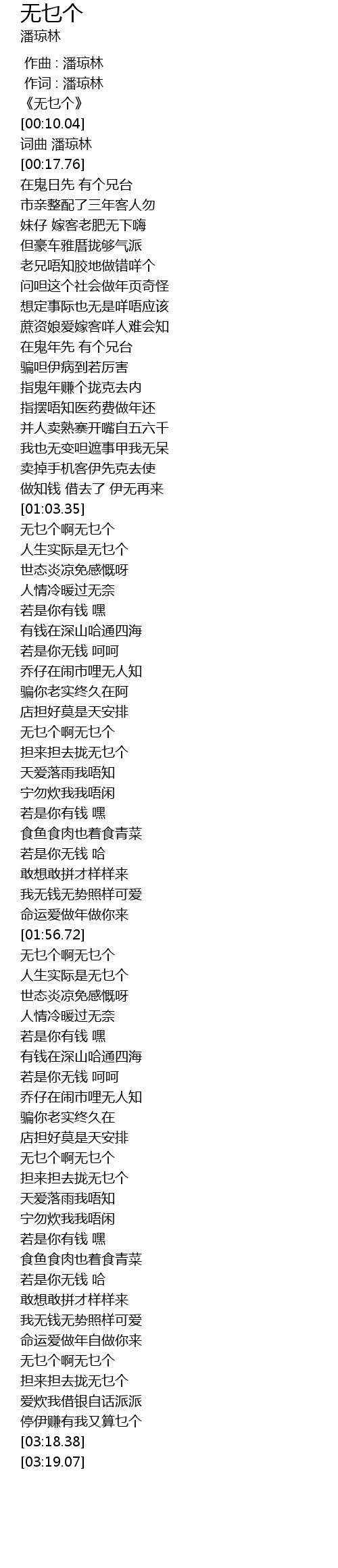 | [00:04.07] | 《无乜个》 |