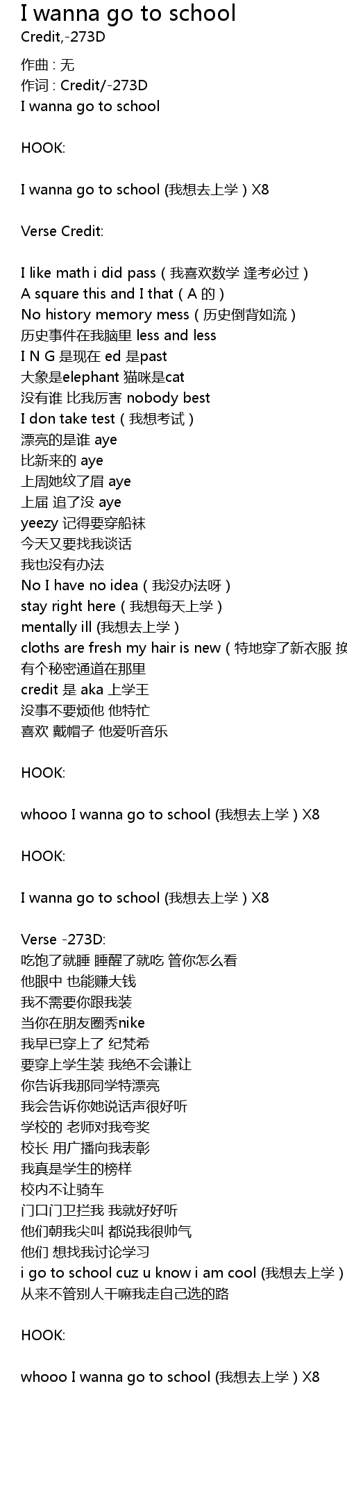 | whooo I wanna go to school wǒ xiǎng qù shàng xué X8 | |