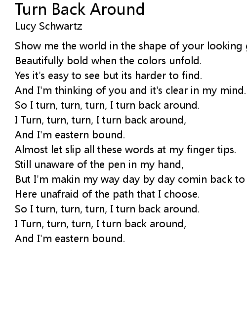 I Turn, turn, turn, I turn back around, |