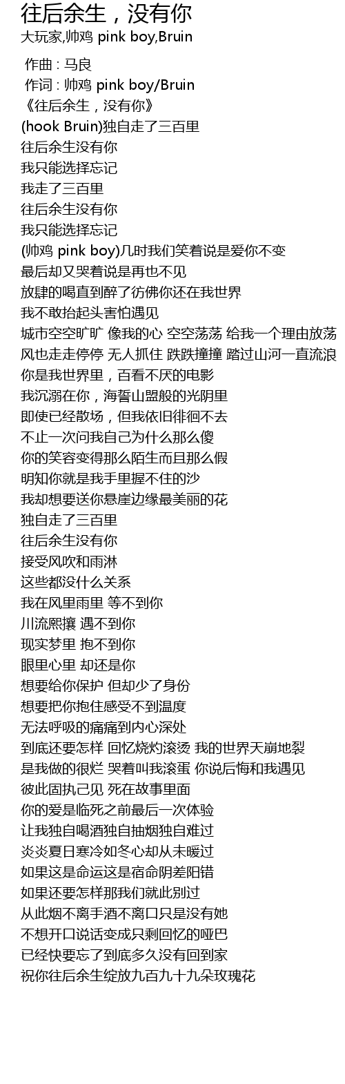 | [00:01.792] | wǎng hòu yú shēng, méi yǒu nǐ |