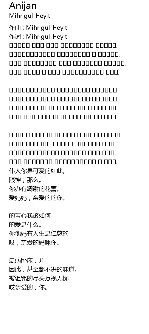 | ھەي ، ئانىجان مېھرىبانىم سەن. | |