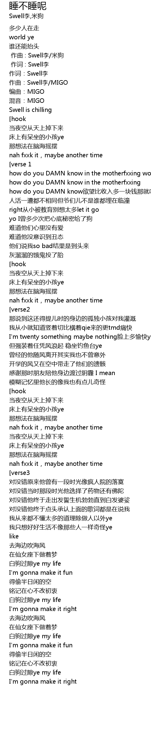 | [00:00.000] | 作曲 : Swell李/米狗 |
