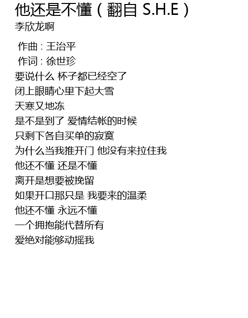 | [00:59.66] | tā hái bù dǒng yǒng yuǎn bù dǒng |