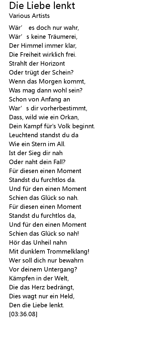 | [01:12.17] | Dein Kampf fü r' s Volk beginnt. |