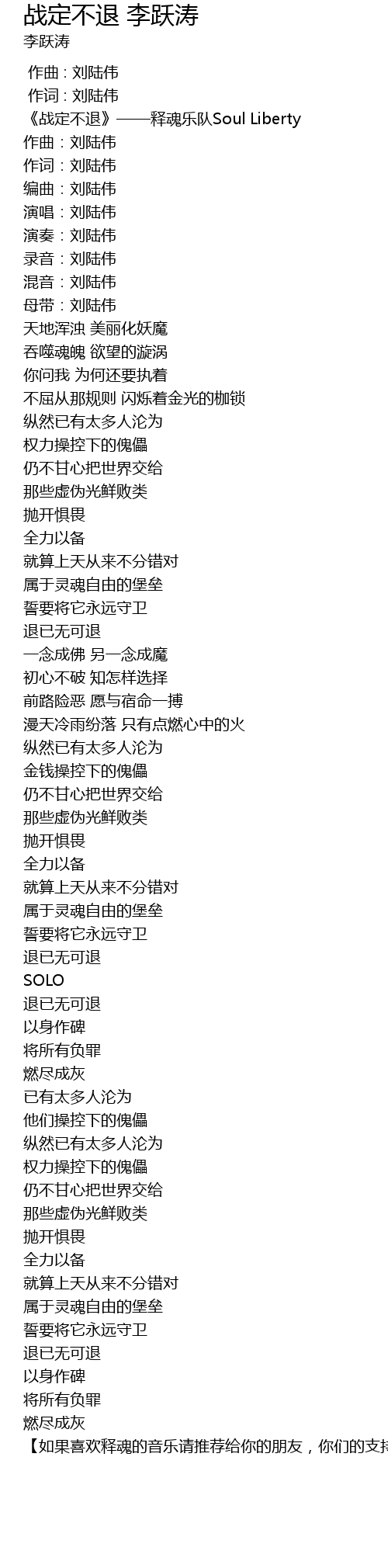 | [00:00.536] | 《战定不退》——释魂乐队Soul Liberty |