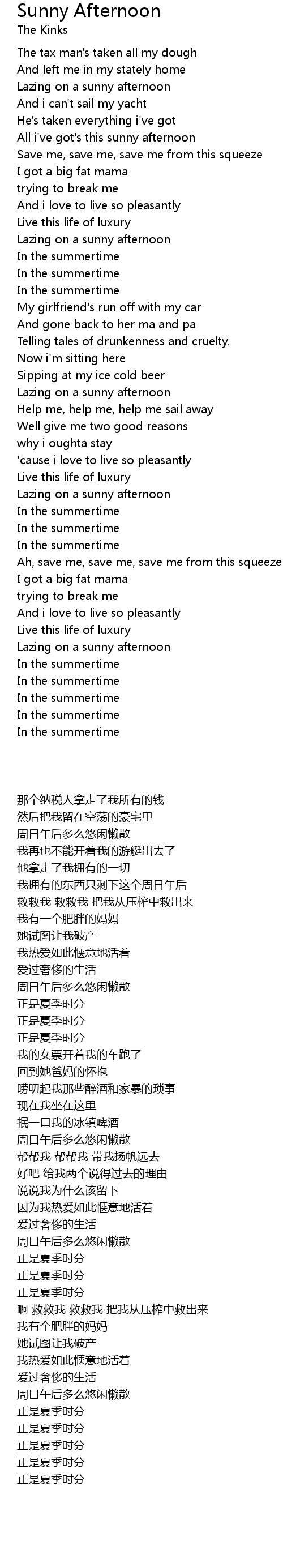 | [00:35.599] | All i' ve got' s this sunny afternoon |