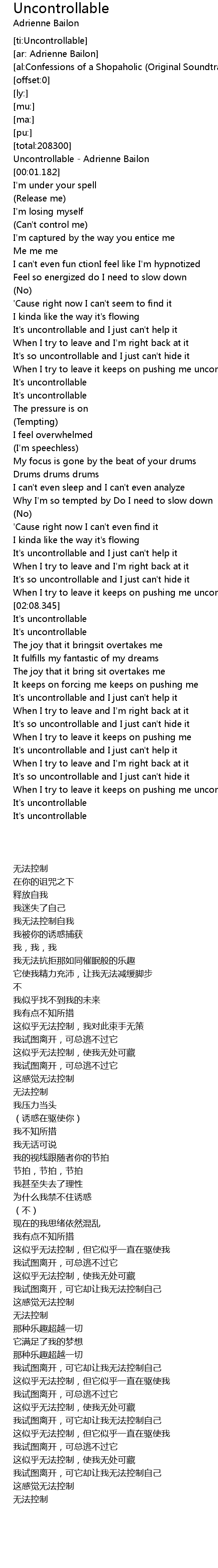 [ti:Uncontrollable] |