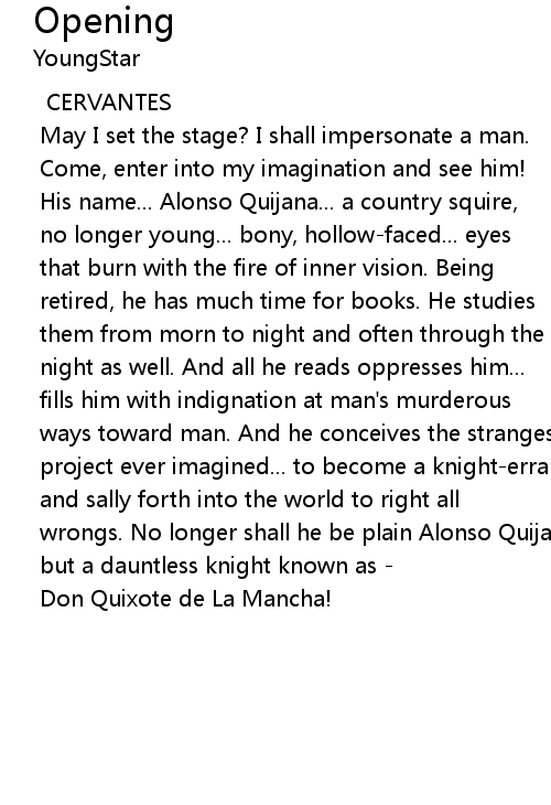 wrongs. No longer shall he be plain Alonso Quijana... |
