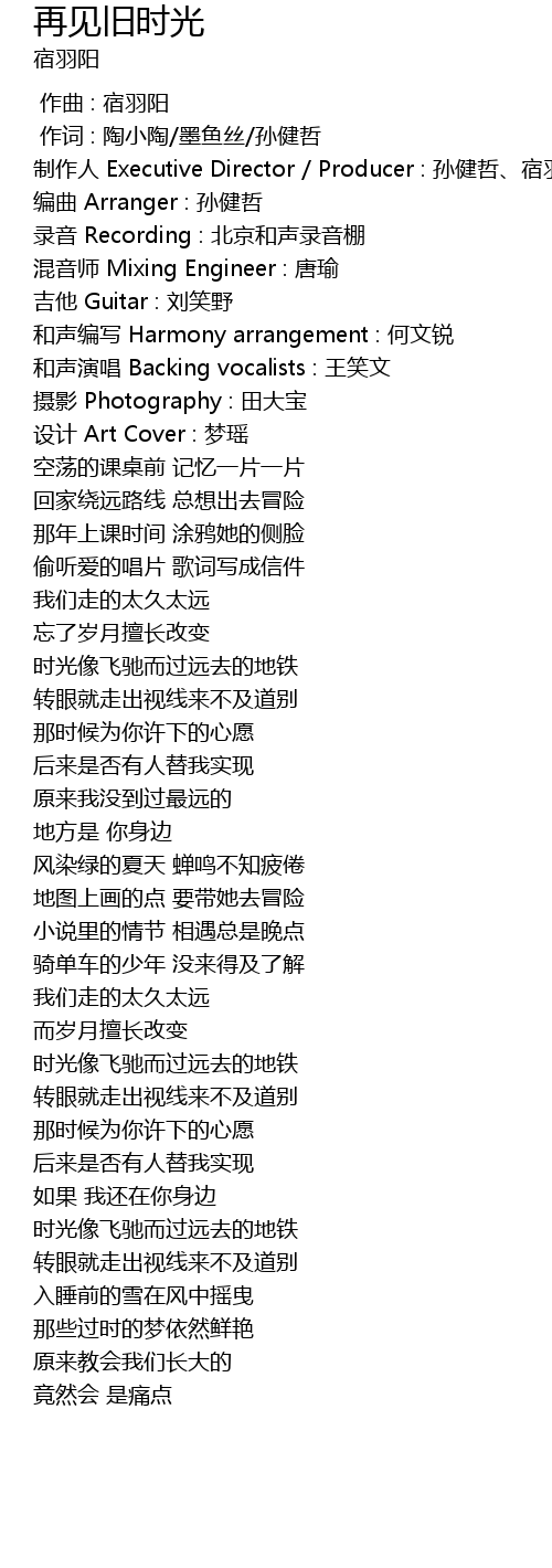 | [00:02.19] | 制作人 Executive Director / Producer : 孙健哲、宿羽阳 |
