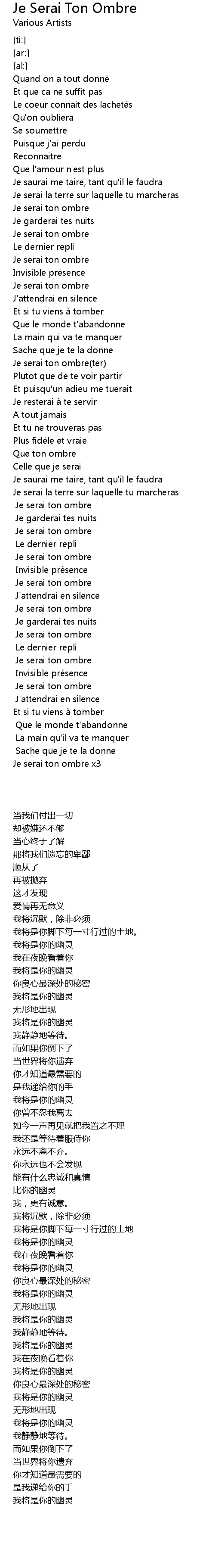 | [00:48.20] | Je serai ton ombre |