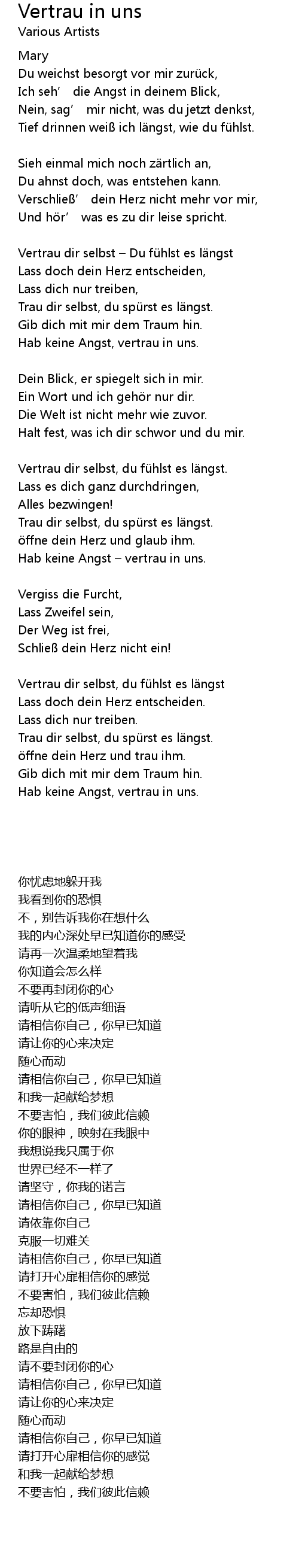 | [02:54] | Vertrau dir selbst, du fü hlst es l ngst |