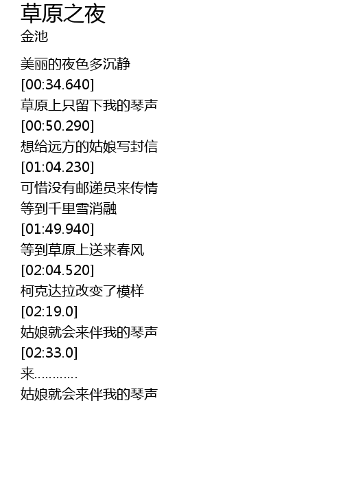 | [02:22.329] | 姑娘就会来伴我的琴声 |