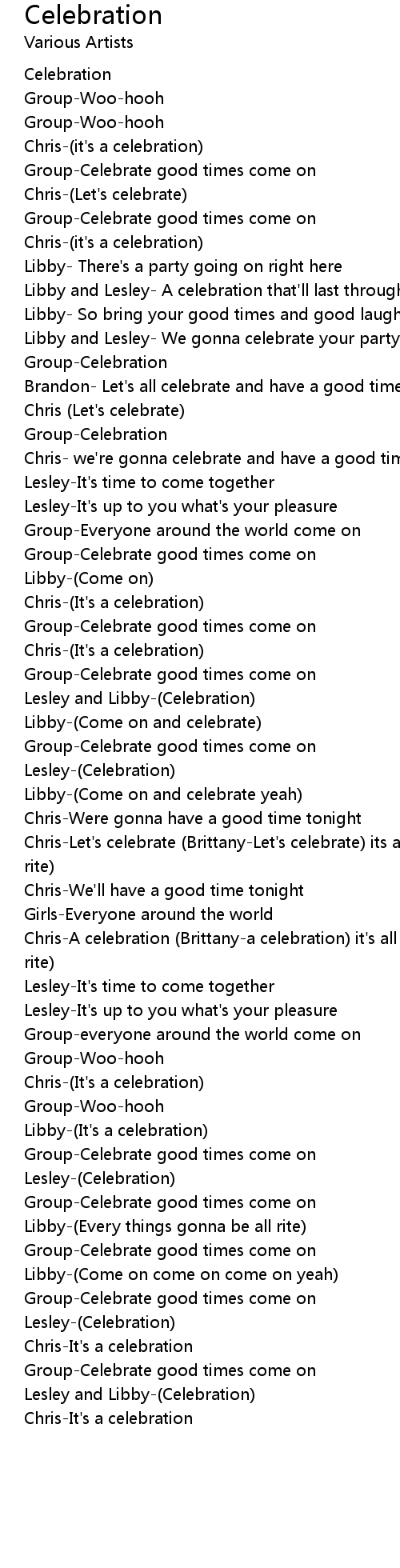 Chris-Let's celebrate (Brittany-Let's celebrate) its all rite (Brittany- its all rite)