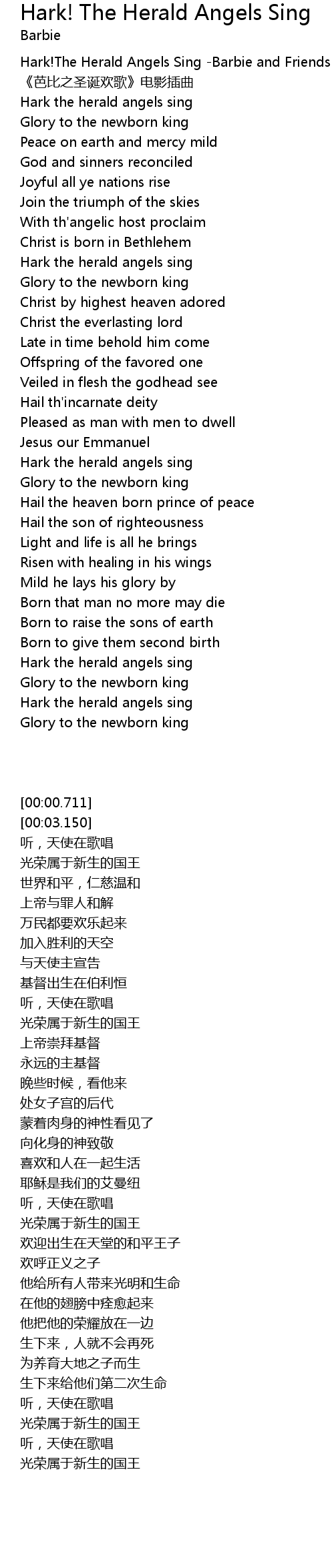 | [00:00.711] | Hark! The Herald Angels Sing Barbie and Friends |