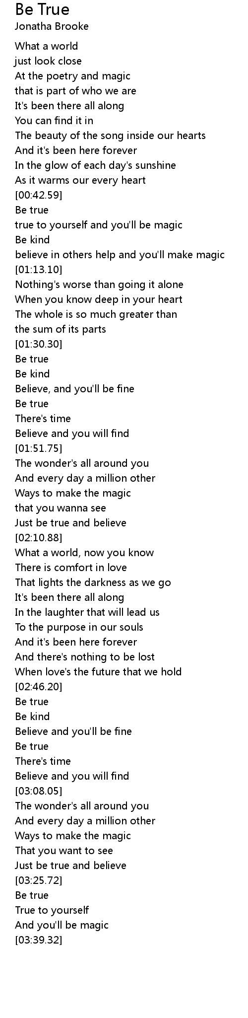 Just be true and believe |