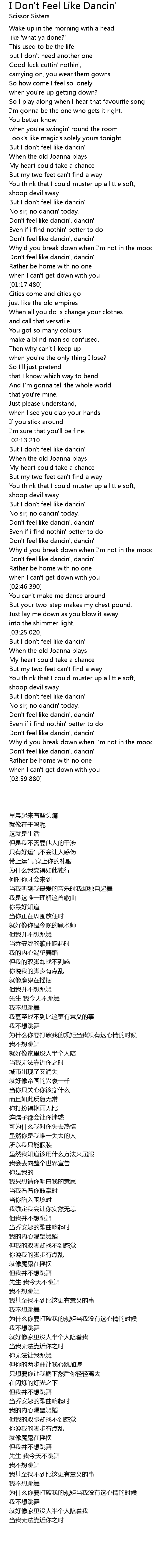 | [02:39.930] | Don' t feel like dancin', dancin' |