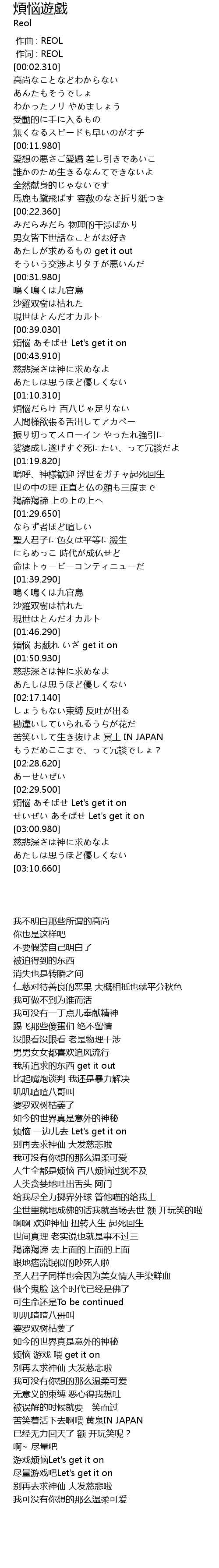 | [01:46.300] | 煩悩 お戯れ いざ get it on |