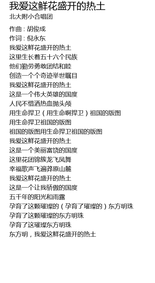 | Song | 我爱这鲜花盛开的热土 |