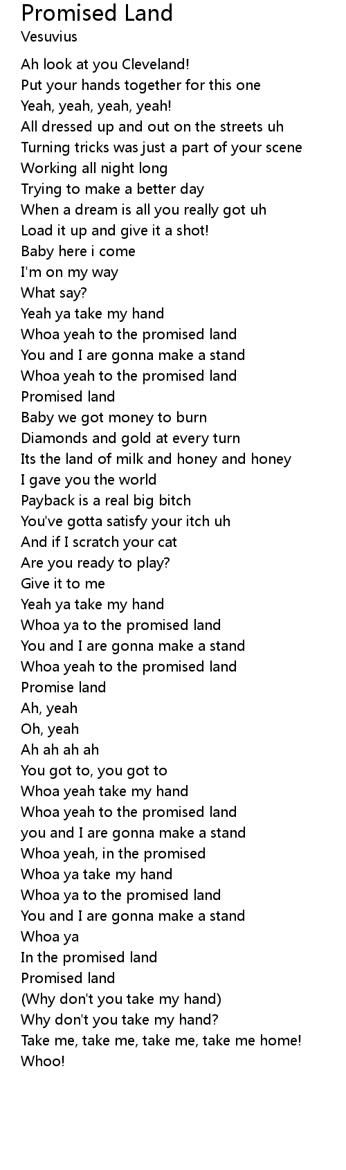 Whoa yeah to the promised land |