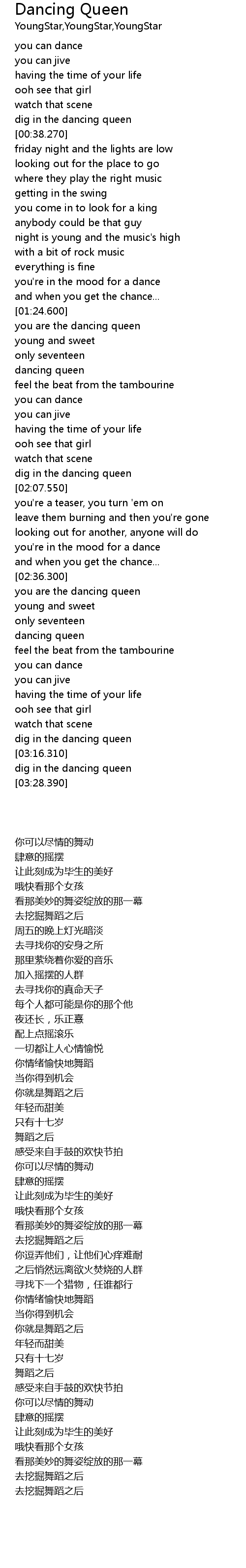 | [01:36.370] | dancing queen |