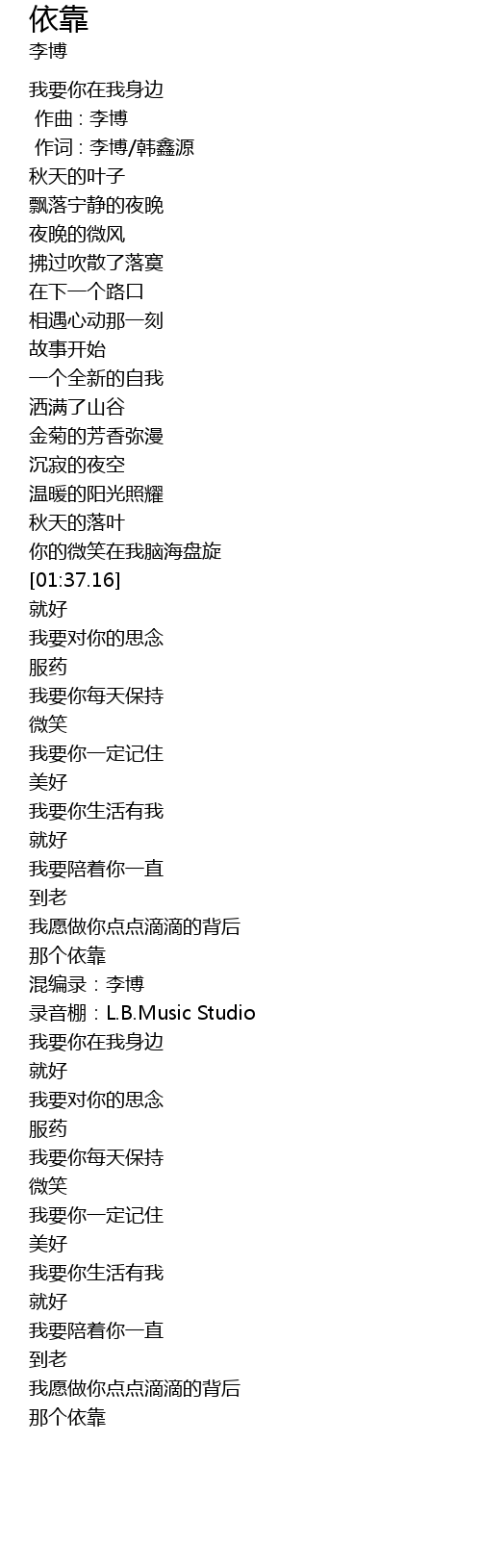 | [00:01.000] | 作词 : 李博/韩鑫源 |