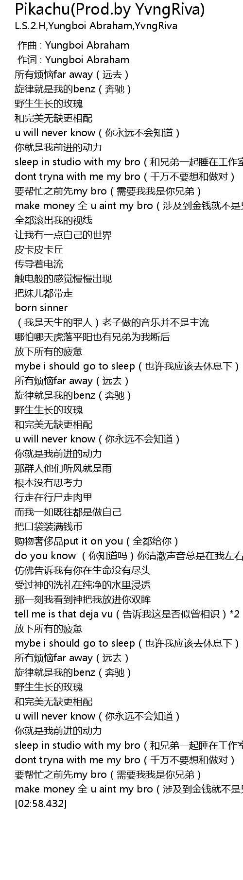 | [02:43.024] | sleep in studio with my bro(和兄弟一起睡在工作室) |