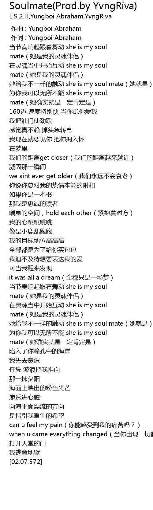 | [00:14.235] | 在灵魂当中开始互动 she is my soul mate(她是我的灵魂伴侣) |