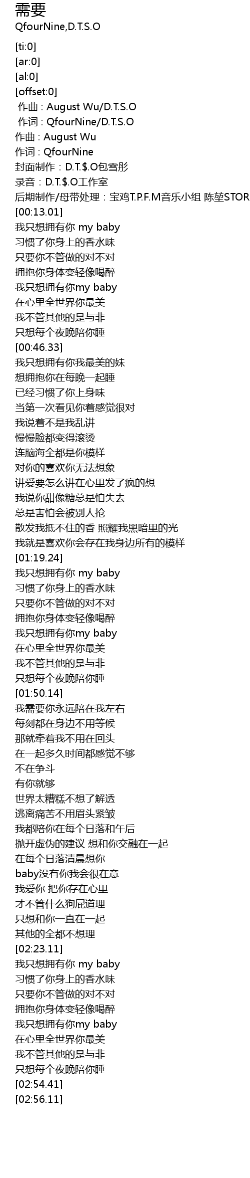 | [00:00.336] | 作词 : QfourNine/D.T.S.O |
