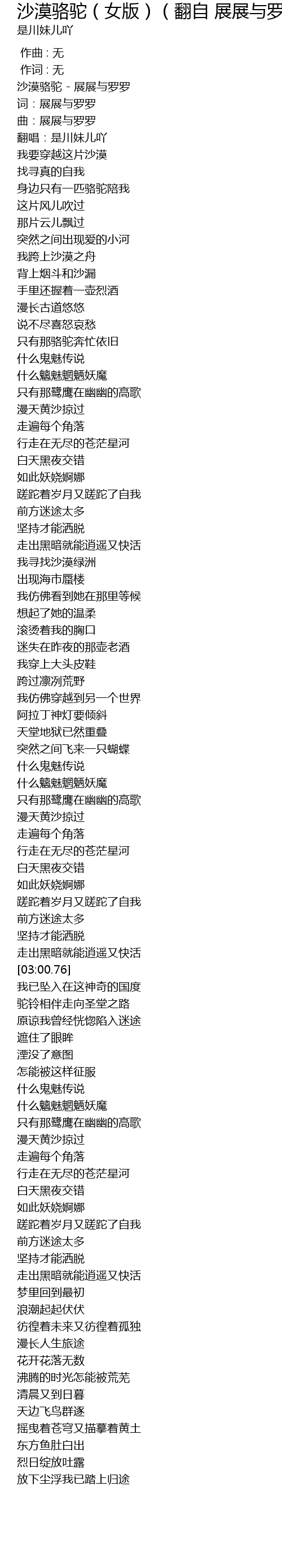 | [00:00.10] | 沙漠骆驼 - 展展与罗罗 |