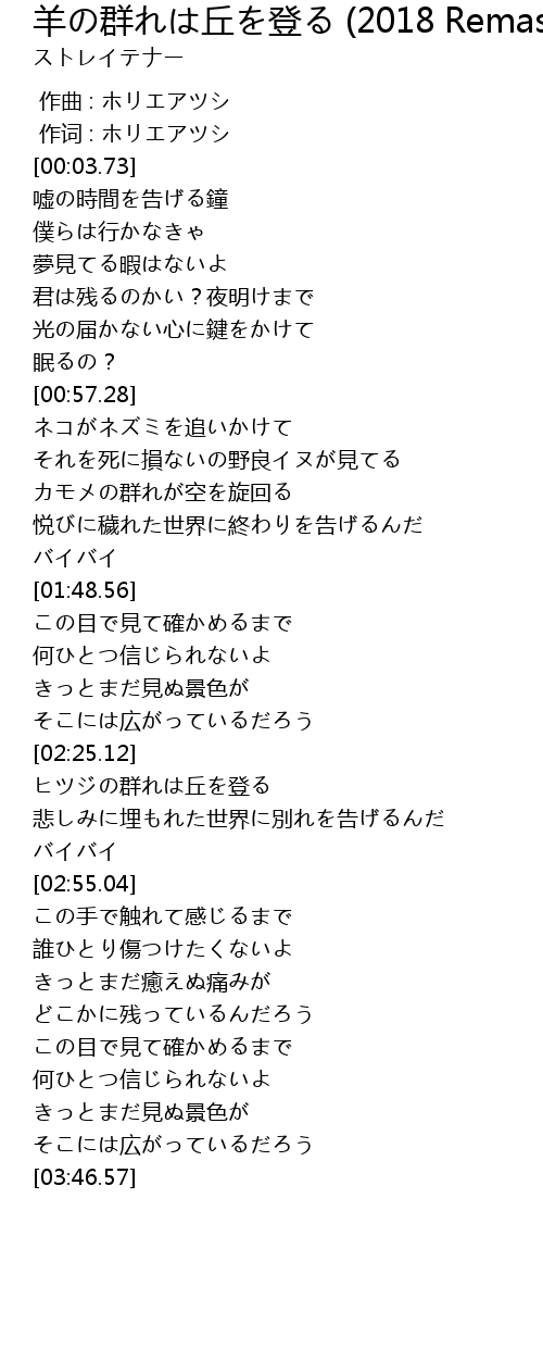 | [02:36.97] | ヒツジの群れは丘を登る |